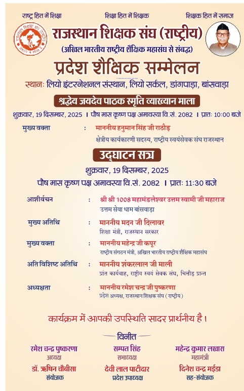 प्रदेश शैक्षिक सम्मेलन (19-20 दिसंबर 2025) स्थान: लियो इंटरनेशनल संस्थान, लियो सर्कल, डांगपाड़ा, बांसवाड़ा